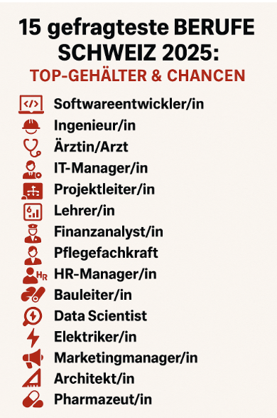 Die Arbeitswelt in der Schweiz befindet sich zweifellos im Wandel. Anhand unserer Analyse der 15 gefragtesten Berufe zeigt sich deutlich ein wachsender Fachkräftemangel quer durch alle Branchen. Besonders im Gesundheitswesen, der IT-Branche und dem Handwerk fehlen qualifizierte Mitarbeiter, während gleichzeitig die Gehälter in diesen Bereichen überdurchschnittlich steigen.