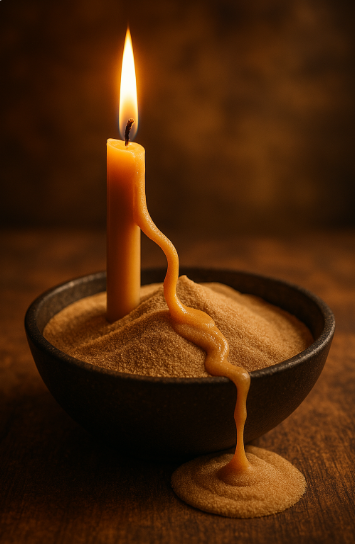 Die Textur des Kerzensands erinnert je nach Variante an feinen Sand oder auch an Schnee. Diese besondere Beschaffenheit macht ihn zu einem vielseitigen Material für kreative Kerzengestaltung – ohne die Notwendigkeit, Wachs zu schmelzen.